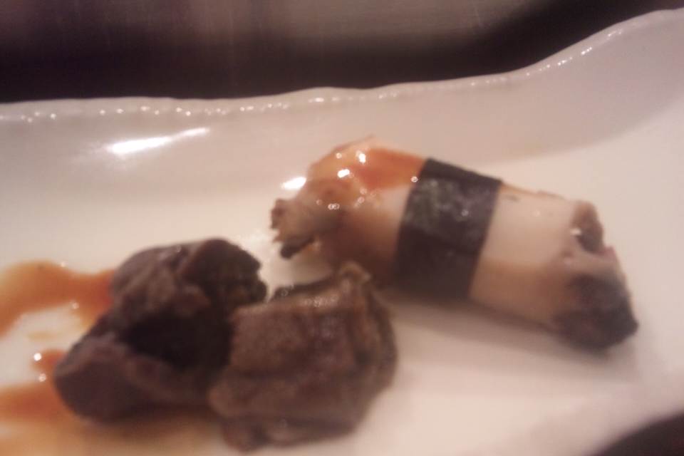 煮穴子のにぎり。 その場で砕いた白ゴマと白髪ねぎをたたいて混ぜ併せたものと一緒にいただきます。 穴子のふくよかな甘さとゴマ&葱の香ばしさのコンビが最高の美味しい。 おかわりしました。