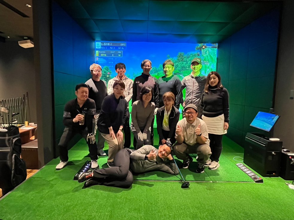 ゴルフは雨と濃霧のために延期となりましたが、その代わりにシミュレーションゴルフをしてから懇親会へ。